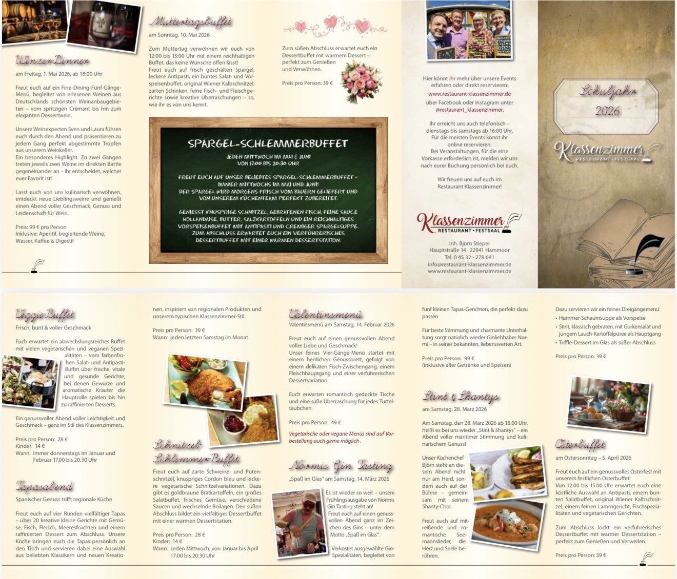 wir freuen uns auf Ihren Besuch in der historischen Dorfschule von Hammoor. Mein Team und ich verwöhnen Sie mit einer kreativen Küche und freundlichem Top-Service in stilvollem Ambiente.